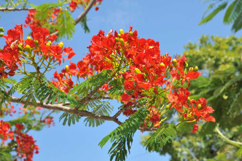 Royal poinciana develops a broad canopy and wide-reaching surface roots that can lift sidewalks, crowd foundations, and take over nearby planting areas. It is not shy. If you plant it too close to your house, it will eventually let you know that was a bad idea.