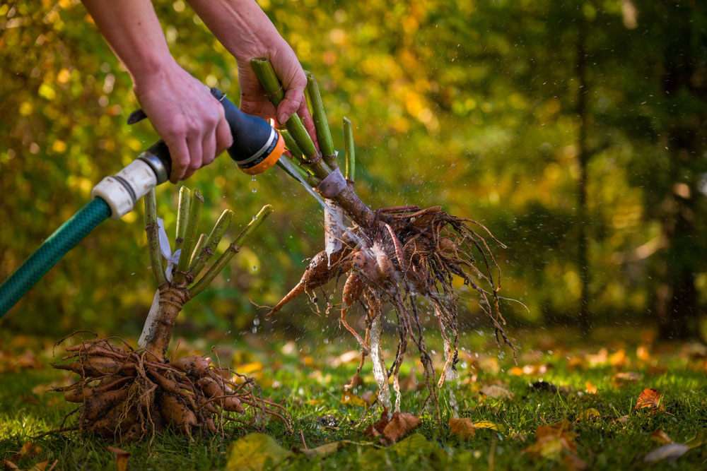 Once they’re out of the ground, it’s safe to shake off any remaining soil. You can even rinse most bulbs gently with the garden hose before storing.